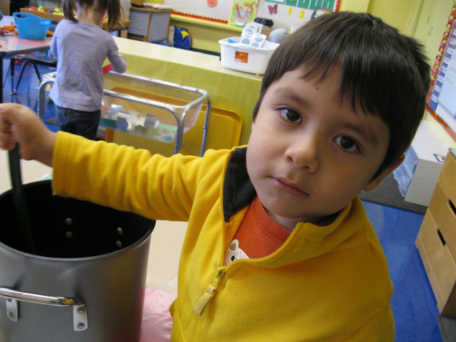 Each child brought an ingredient for the soup and got to add it to the big soup pot.